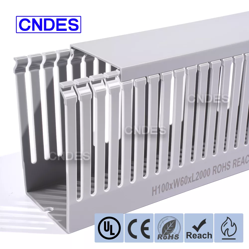 Præcisionsspalte - Præcisionsrille - Kvaliteten 100×60 PVC-kanal til elektriske paneler har et ensartet rilledesign, der tillader kabler at komme rent ud fra enhver position; tilpassede hulmønstre fås som ekstraudstyr..