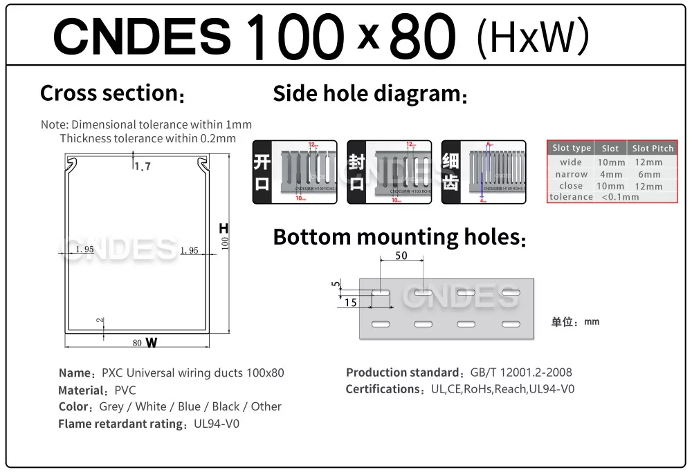 Vores 100×80 fleksible slidsede PVC-ledningskanal tilbyder rigelig intern plads og en fleksibel slidset struktur, hvilket muliggør nem kabelføring, justeringer eller udvidelser i marken. Den er ideel til applikationer, hvor pladsudnyttelse og fleksibilitet er kritisk, såsom styreskabe, industripaneler, automationssystemer og elektriske kabinetter.
