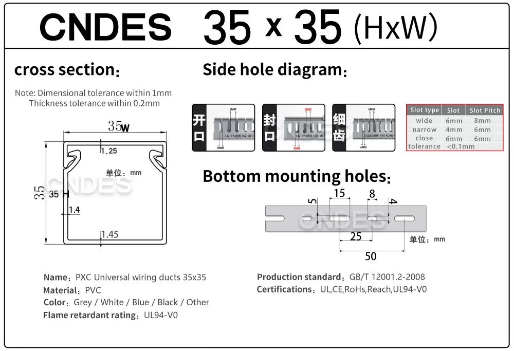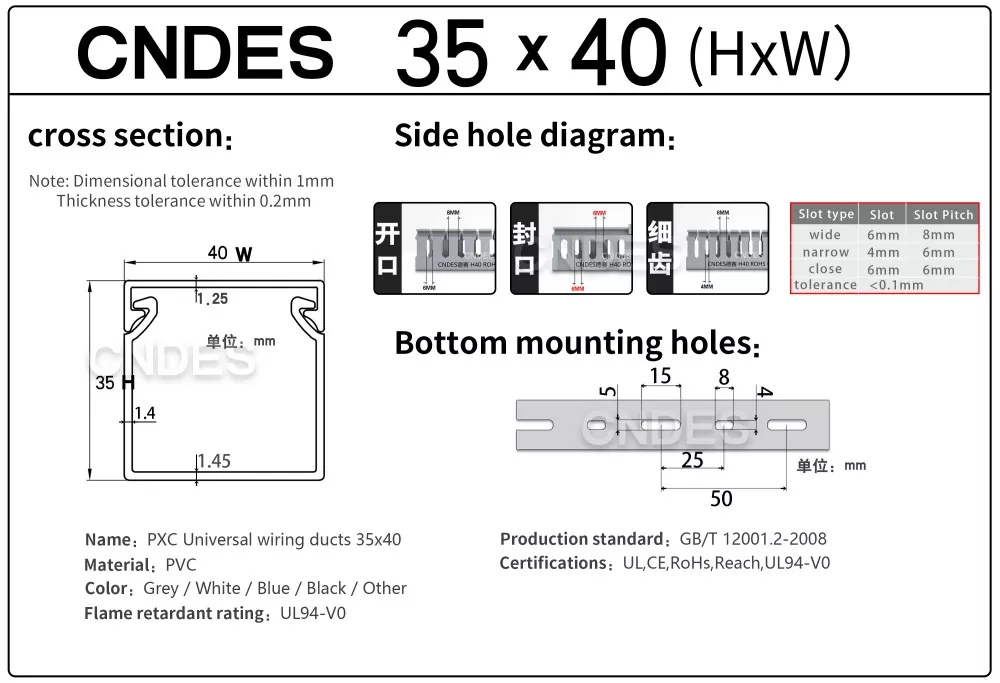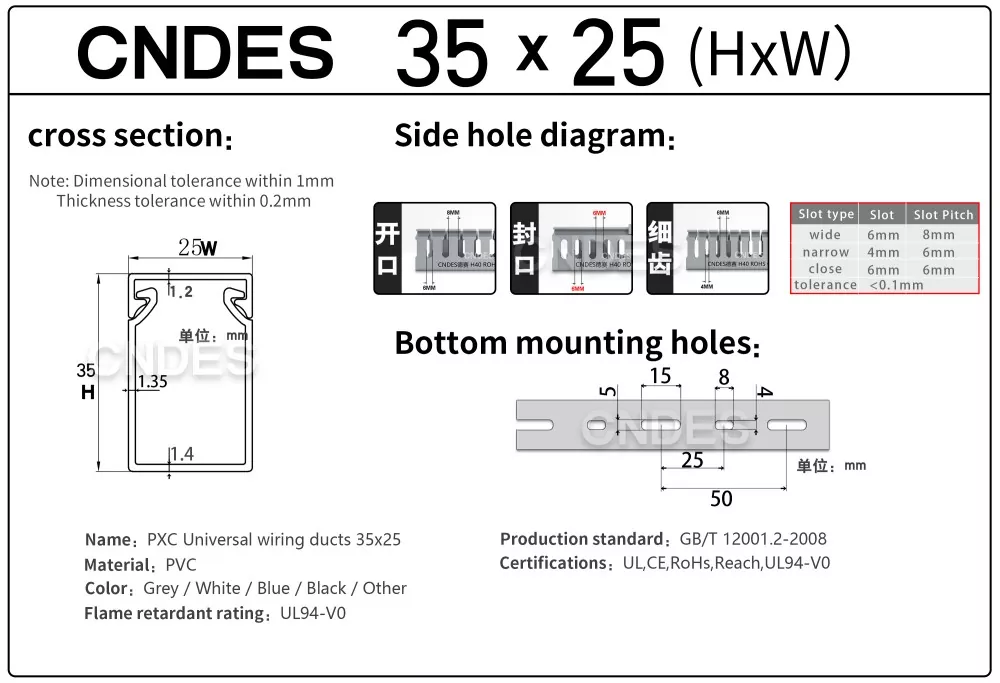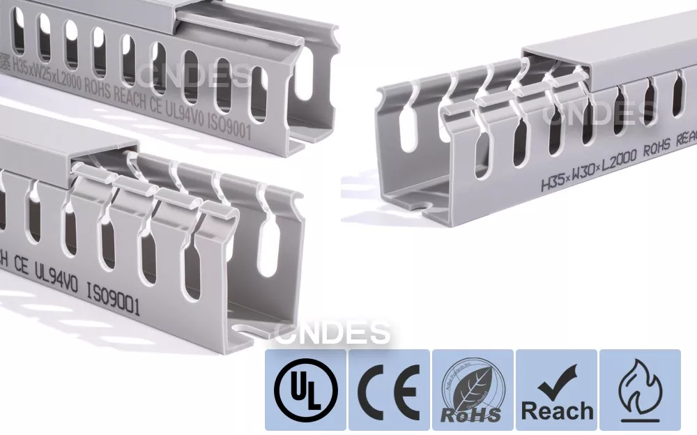 Internationale certificeringer: Vores tilpassede 35 mm høje slidsede PVC-ledningsføringskanal er certificeret til at opfylde de højeste sikkerhedsstandarder, herunder UL, CE, RoHS og REACH.