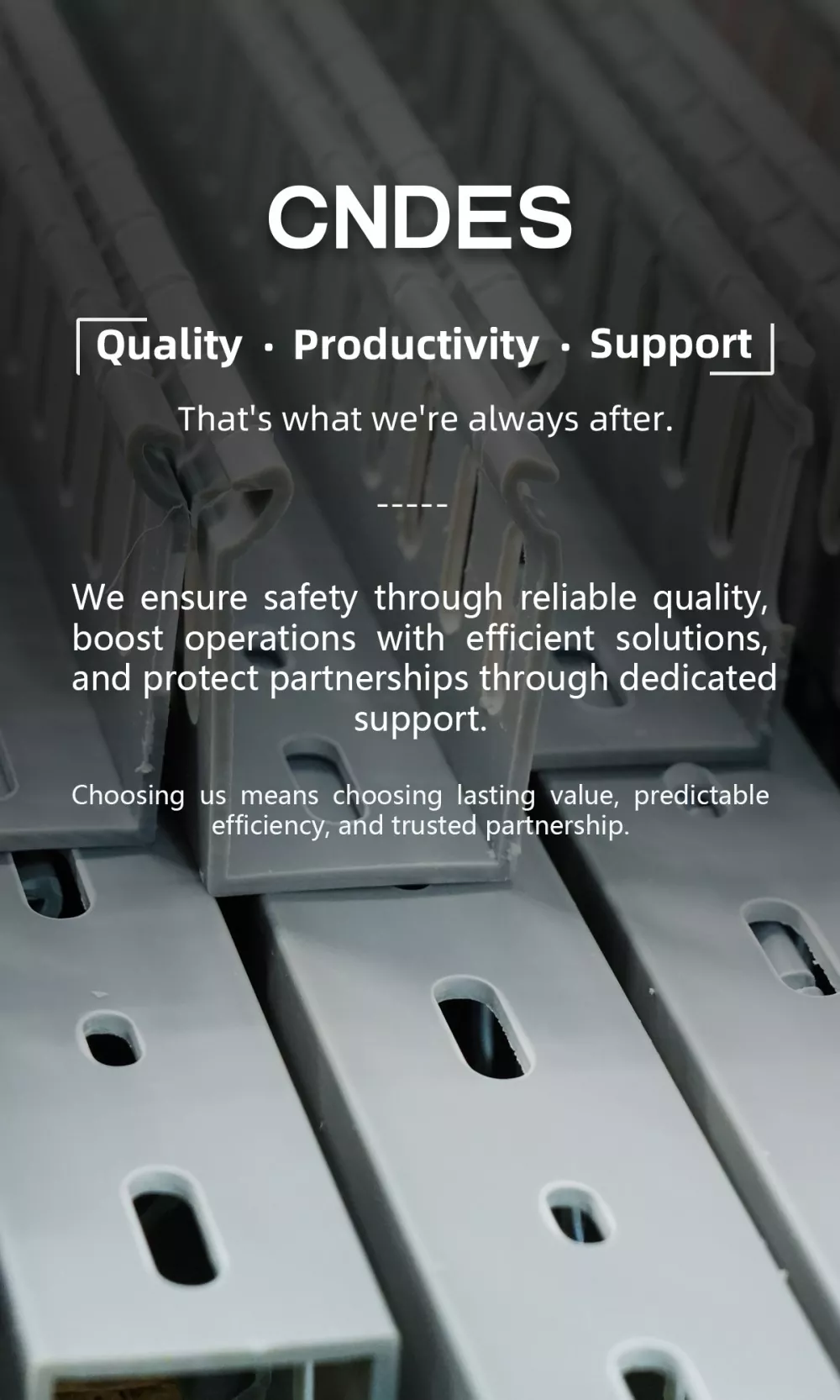 Erfaren producent: Med over 20 år i kabelhåndteringsindustrien er CNDES en betroet PVC-kanalproducent, der leverer pålidelige produkter af høj kvalitet.