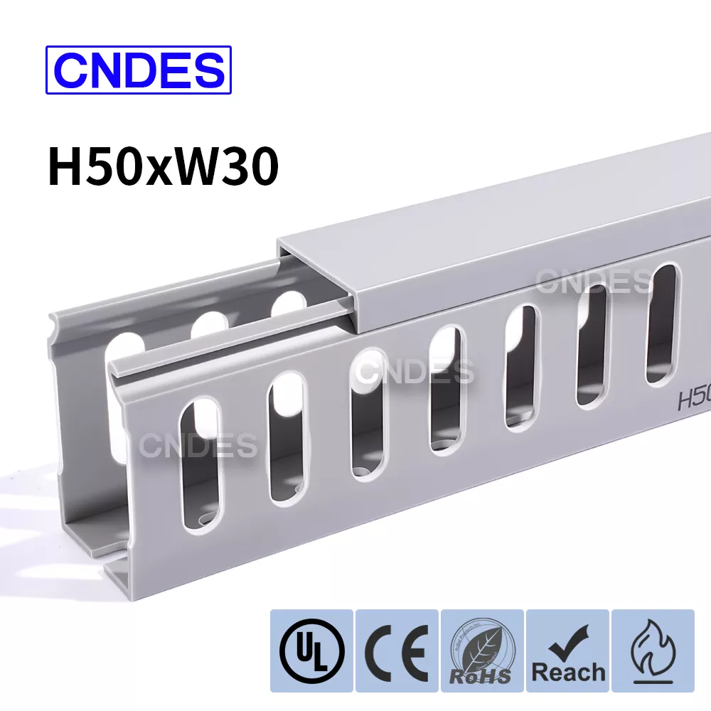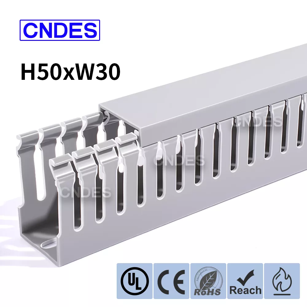 Kvalitets 50×30 slidsede PVC-kabelorganisationskanal fra CNDES er en kompakt, effektiv løsning til håndtering af kabler i trange rum, såsom små kontrolskabe, dataskabe og udstyrsforbindelsesdåser. Denne slanke ledningskanal giver installatører mulighed for at organisere, adskille og beskytte kabler uden at optage for meget panelplads.