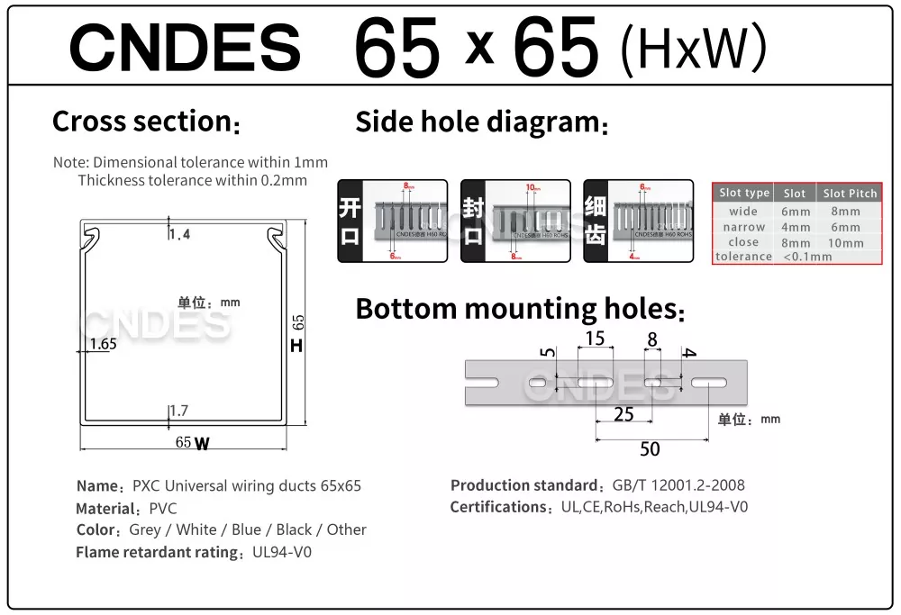 Som en professionel producent vil vi gerne give dig CNDES slidset 65×65 PVC Cable Raceway.