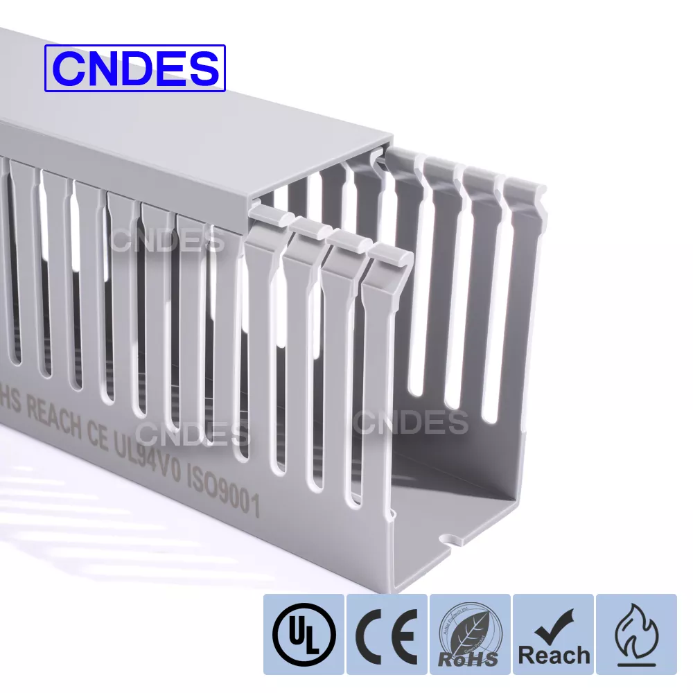 CNDES er en professionel producent af PVC-slidsede kabelbakker beliggende i Kina. Her vil vi introducere vores 80×50 Slotted PVC Panel Cable Organizer, hvor 80*50 mm repræsenterer en kabelbakke med en højde på 80 mm og en bredde på 50 mm.