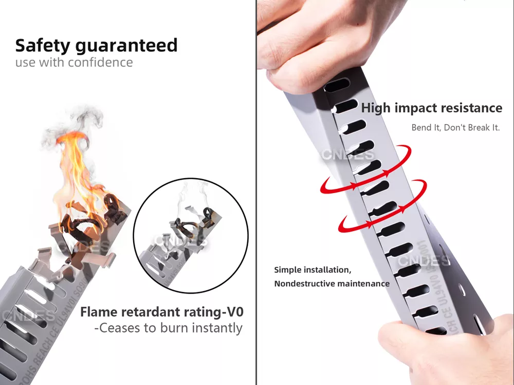 Vores 80×50 slidsede PVC-panelkabelarrangør er miljøvenlig, flammehæmmende og meget slagfast og har bestået flere autoritative certificeringer.