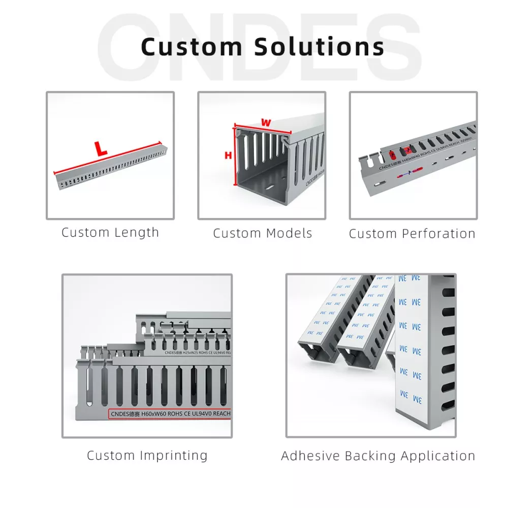 Når standard kabelbakker ikke kan rumme komplekse ledningsnet, er CNDES Customized 80×80 slidsede PVC-omstillingsledningsledninger dit gode valg. Med et stort internt rum på 80 mm*80 mm er det specielt designet til scenarier med høj efterspørgsel såsom datacenter-backbone-kabler, industrielt udstyrs strømklynger og centraliserede ledninger i store styreskabe. Den rummer og organiserer nemt et stort antal kabler og siger farvel til rod og overbelastning én gang for alle.